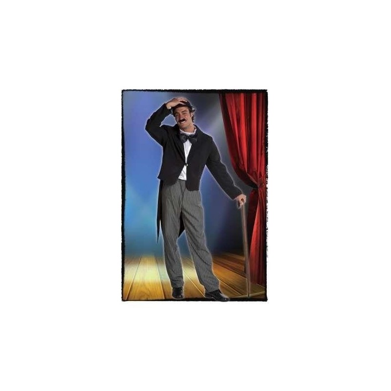 Nicht auf LagerContiene pantalón, frac y camisa con pajarita. Encarna al cómico actor de cine mudo mas entrañable de todos los tiempos charles chaplin, también conocido como charlot. Disfraz ideal para cualquier tipo de fiesta y carnaval.